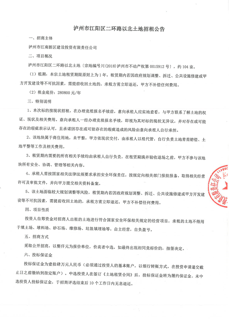 瀘州市江陽(yáng)區(qū)二環(huán)路以北土地招租公告