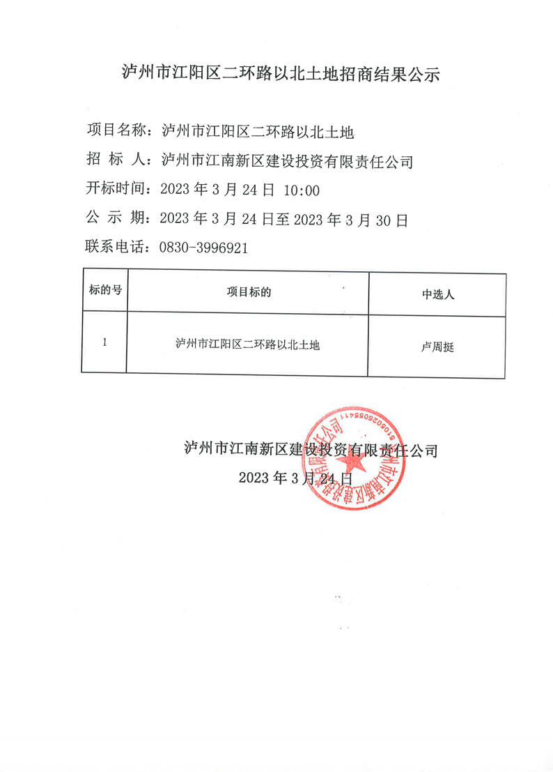 瀘州市江陽(yáng)區(qū)二環(huán)路以北土地招商結(jié)果公示