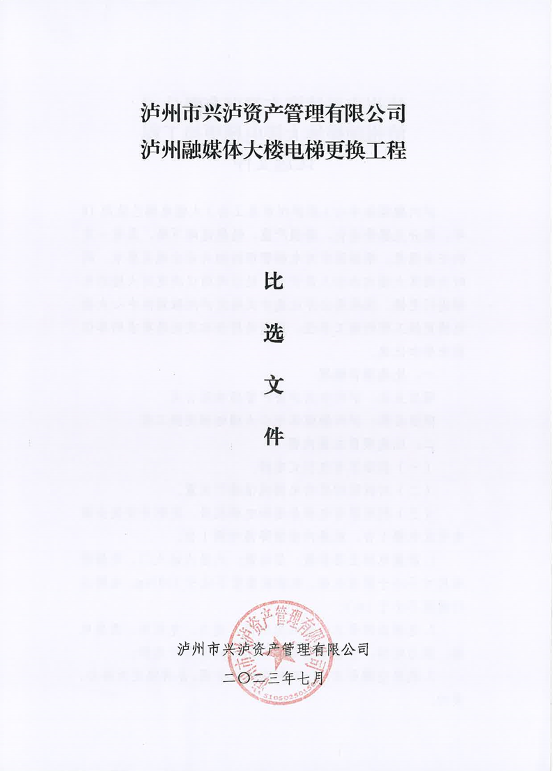 瀘州市興瀘資產(chǎn)管理有限公司瀘州融媒體大樓電梯更換工程比選文件