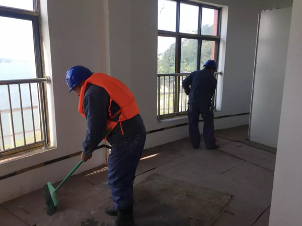圖為南郊水業(yè)工作人員清掃取水泵站環(huán)境衛(wèi)生