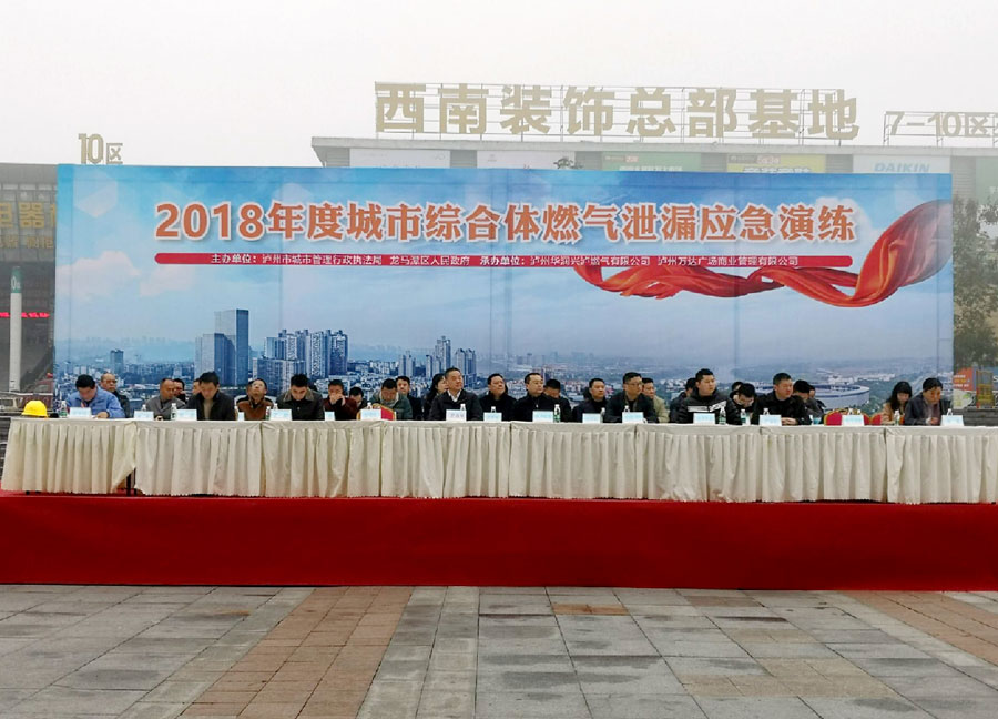 為確保城市燃?xì)獍踩褂?,提高華潤(rùn)興瀘燃?xì)夤咎幹贸鞘芯C合體燃?xì)庑孤┦鹿实膽?yīng)急反應(yīng)能力,12月20日上午,由瀘州市城市管理和行政執(zhí)法局,龍馬潭區(qū)人民政府主辦,瀘州華潤(rùn)興瀘燃?xì)庥邢薰荆瑸o州萬(wàn)達(dá)廣場(chǎng)商業(yè)管理有限公司承辦的2018年度城市綜合體燃?xì)庑孤?yīng)急演練在瀘州萬(wàn)達(dá)廣場(chǎng)舉行。瀘州市興瀘集團(tuán)、龍馬潭區(qū)消防大隊(duì)、龍馬潭區(qū)公安局、龍馬潭區(qū)交警大隊(duì)、龍馬潭區(qū)衛(wèi)計(jì)委相關(guān)領(lǐng)導(dǎo)出席并參與了此次應(yīng)急演練。