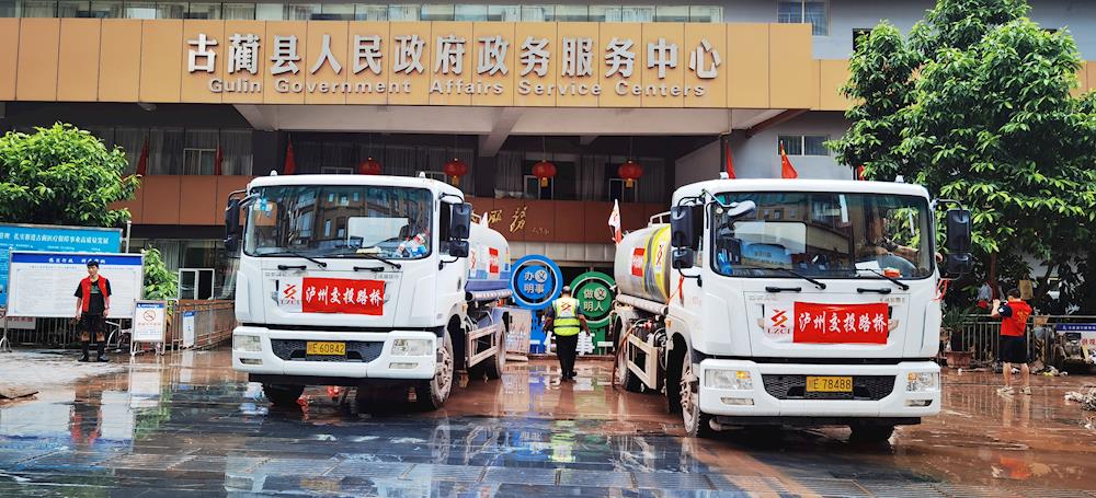 公司10余名黨員干部對古藺縣人民政府政務(wù)服務(wù)中心辦事大廳、負(fù)一樓及周邊區(qū)域路面約5000㎡進(jìn)行清淤沖洗,為盡快恢復(fù)政務(wù)中心業(yè)務(wù)辦理秩序打下堅實基礎(chǔ)。截至目前,瀘州交投路橋公司已派出人員30人,集結(jié)挖掘機(jī)、裝載機(jī)、水車等21臺。